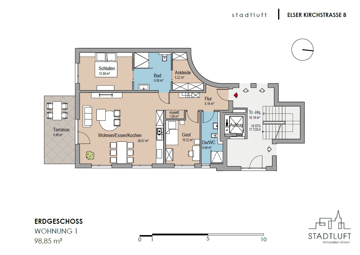 Sämtliche Wohnungen sind barrierefrei erreichbar, ein Personenaufzug mit vier Haltestellen bringt Sie von