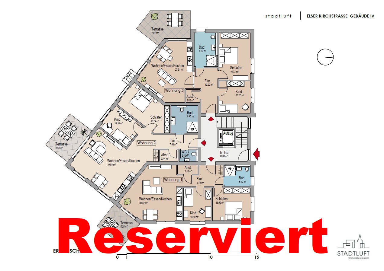 Sämtliche Wohnungen sind barrierefrei erreichbar, ein Personenaufzug mit vier Haltestellen bringt Sie von
