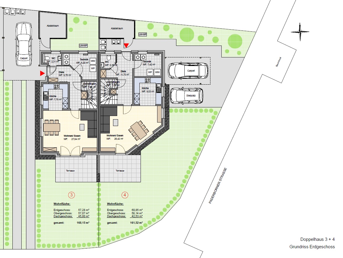 Diese Neubau-Doppelhaushälften befinden sich in Bad Lippspringe / Schlangen, Zum Kurwald / Ecke Paderborner Straße einer ruhigen und familienfreundlichen Wohnlage.