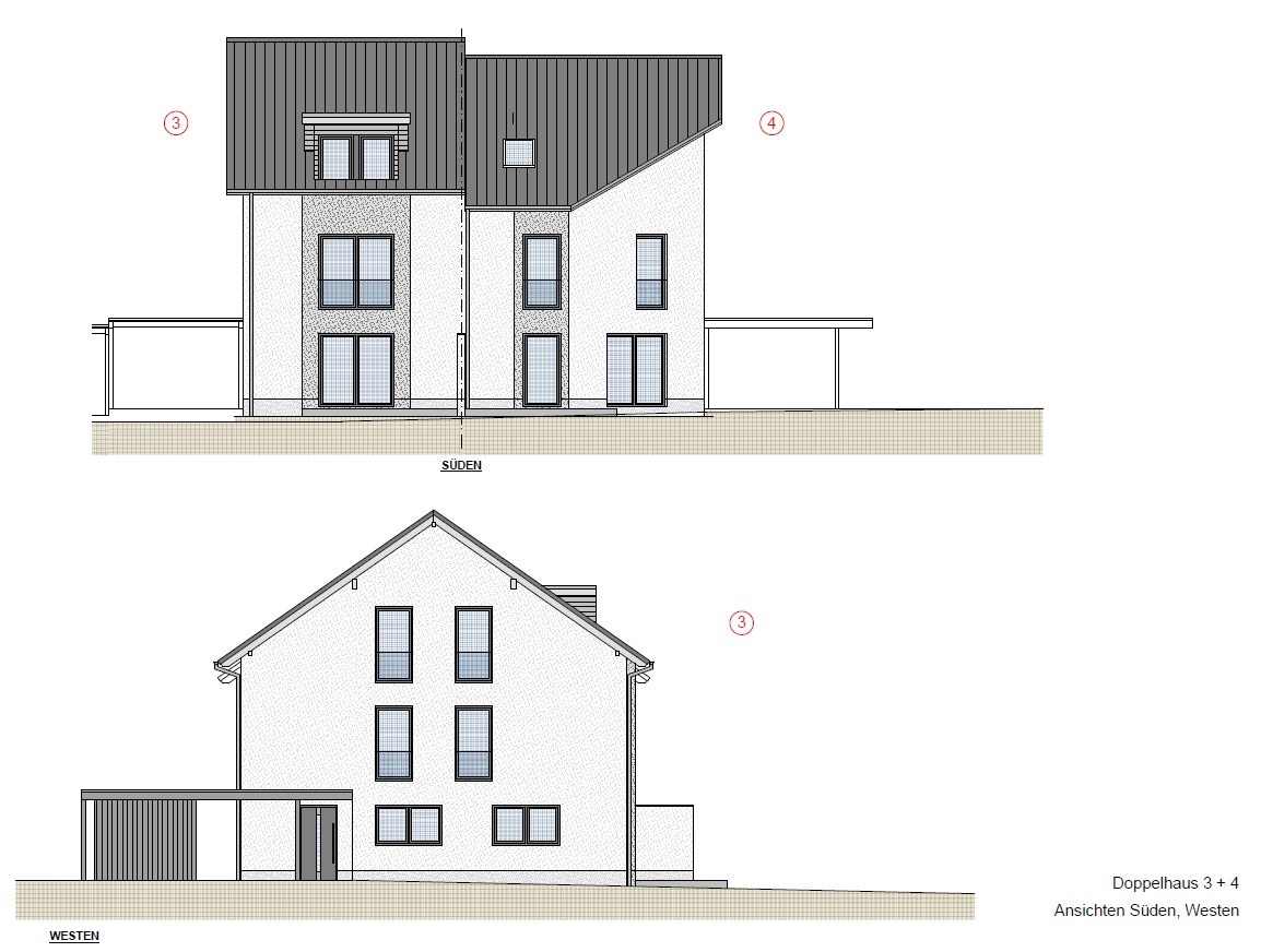Diese Häuser 3 und 4, können als Ausbauhaus gewählt werden und verschiedene Ausbaustufen können zusätzlich erworben werden.