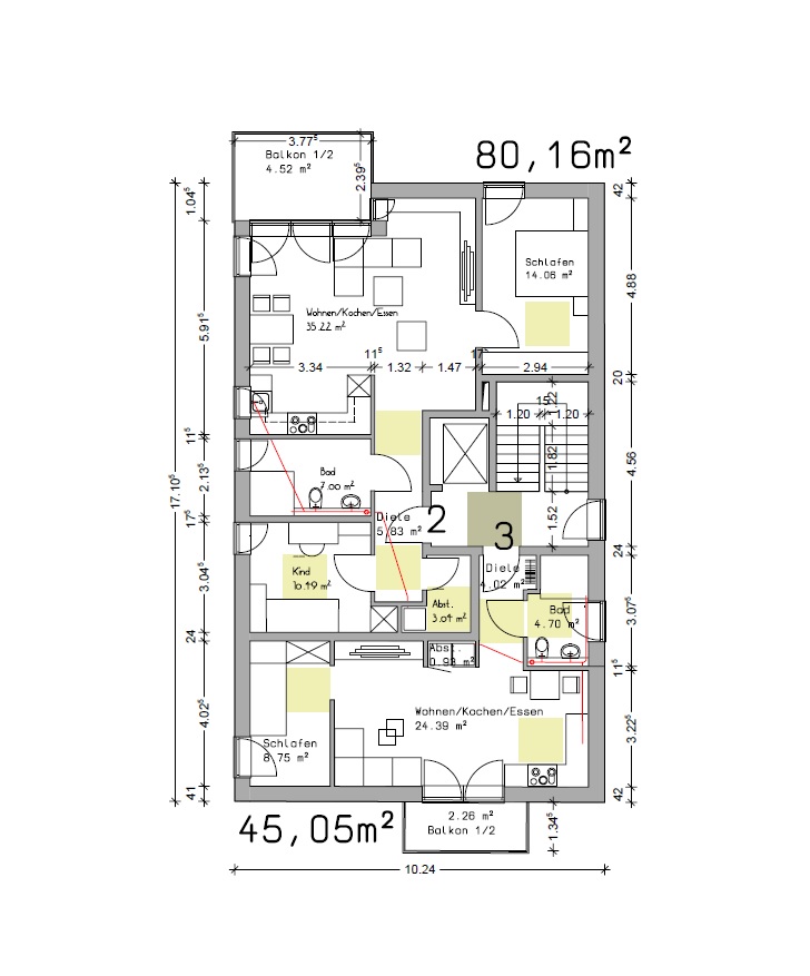 die Wohnungen in den oberen Geschossen sind durch den Aufzug barrierefrei zu erreichen und erhalten je einen schönen Balkon.